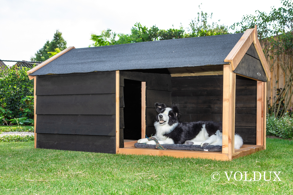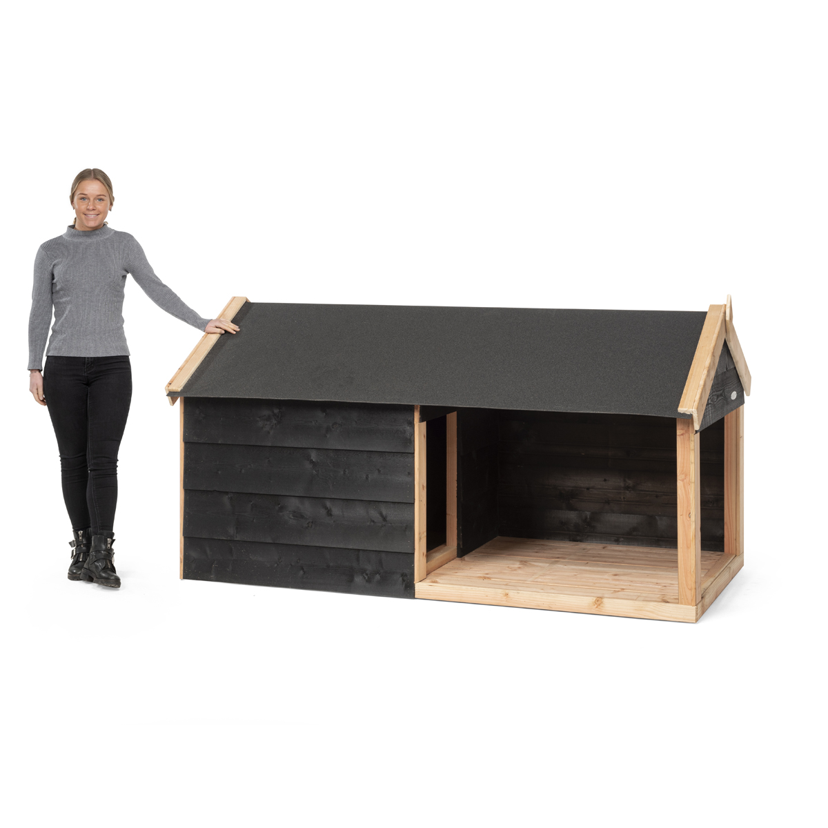 Dit luxe hondenhok voor buiten is voorzien van zwart potdeksel en een Douglas frame