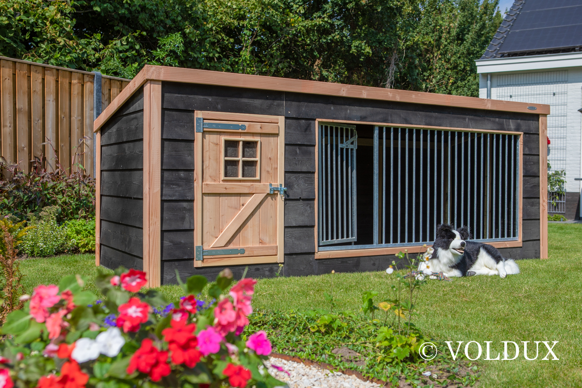 Het dak van de kennel is bedekt met dakleer voor een goede afwatering op het verblijf
