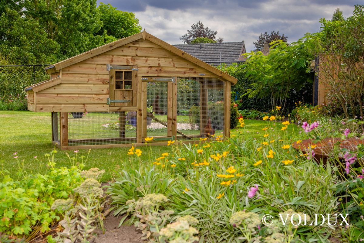 Dit kippenhok is gemaakt van geimpregneerd hout en is hierdoor onderhoudsvrij