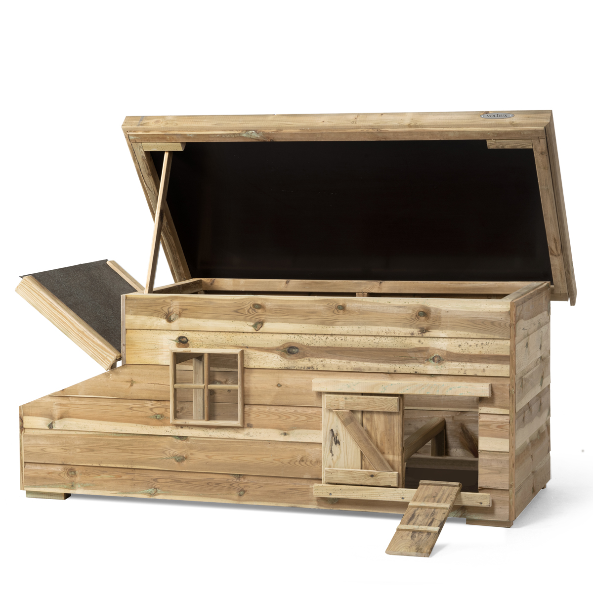 Dit kippenhok is gemaakt van geimpregneerd hout en is hierdoor onderhoudsvrij