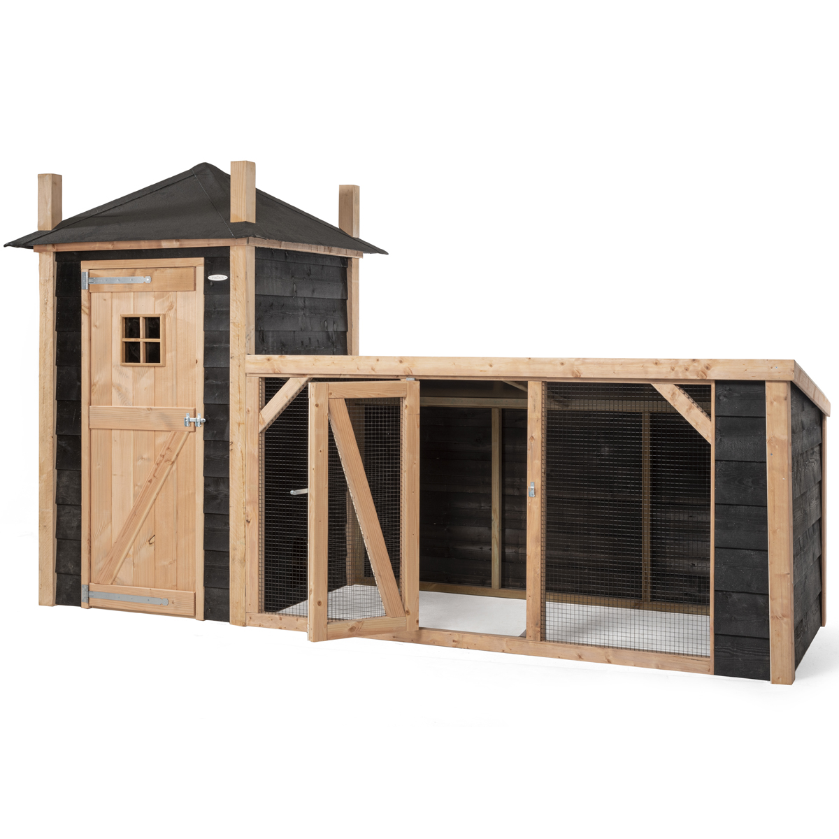 Groot kippenhok met overdekte kippenren gemaakt van onderhoudsvrije materialen