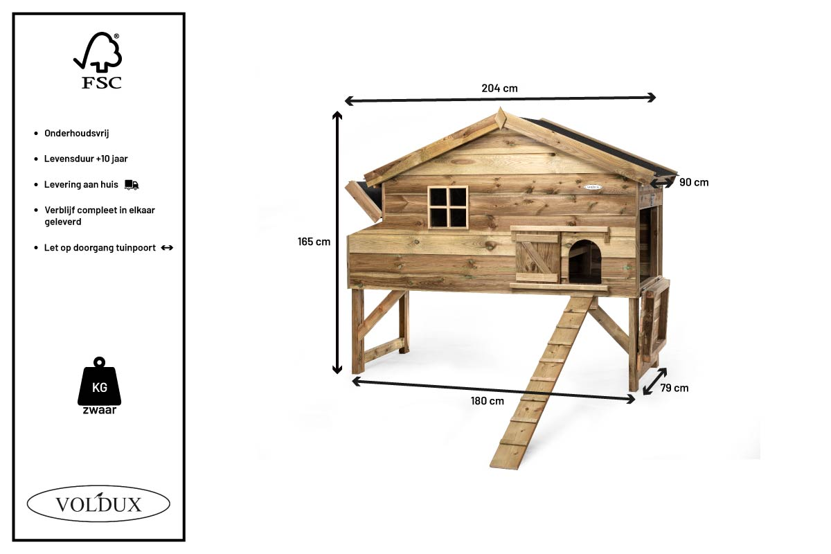 Deze kippenvilla is voorzien van meerdere deurtjes, een looptrap met griplatten en een legnest waarbij u gemakkelijk de eieren kan rapen