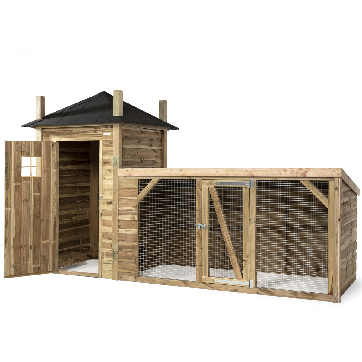 Het kippenhok is uitgevoerd met onderhoudsvrije materialen van hoge kwaliteit