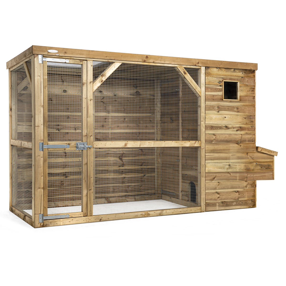 Dit kippenhok is gemaakt van geïmpregneerd hout, en is hierdoor onderhoudsvrij