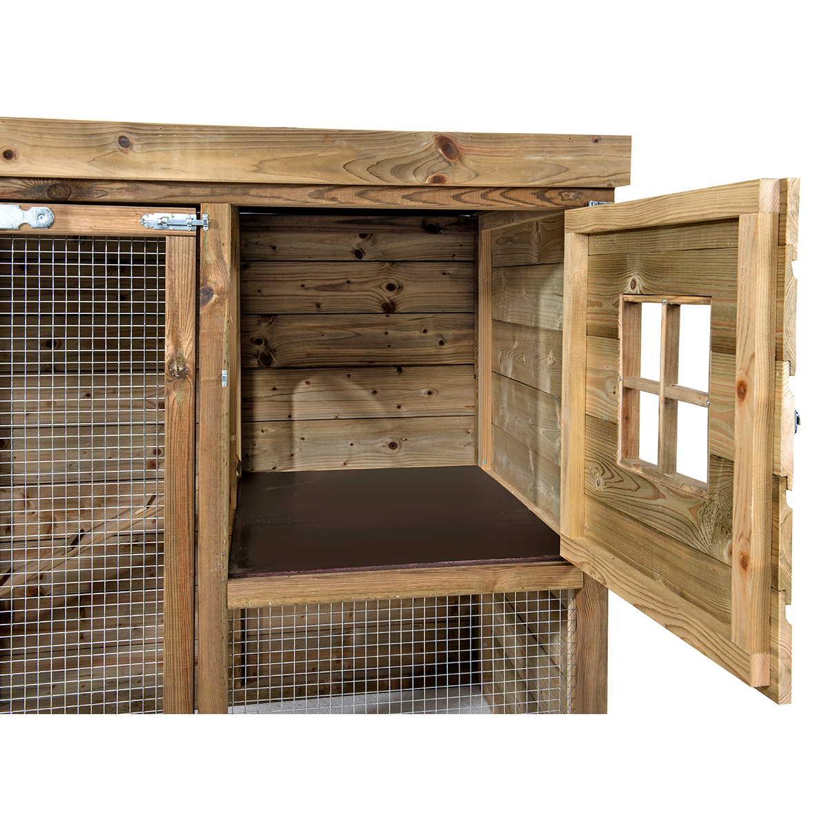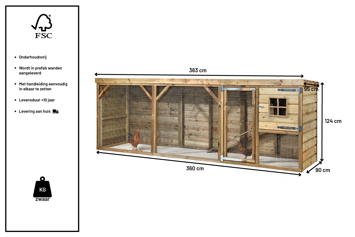 Gemaakt van onderhoudsvrije materialen en voorzien van betonplex bodem in het nachthok
