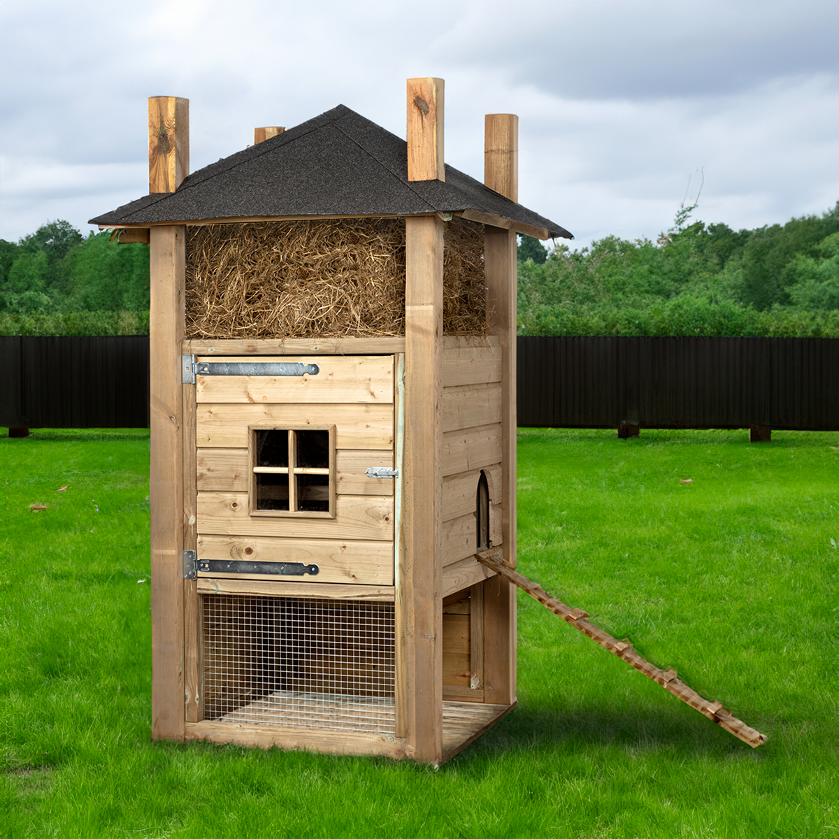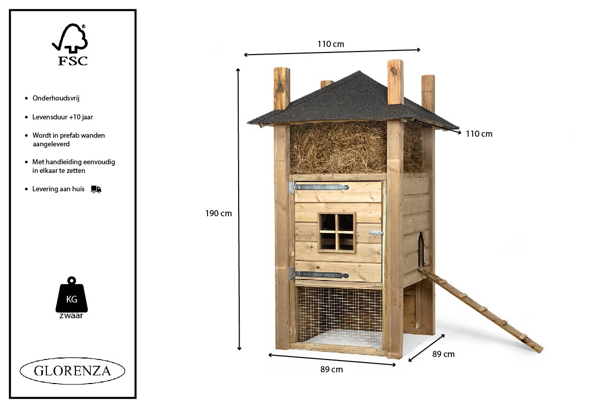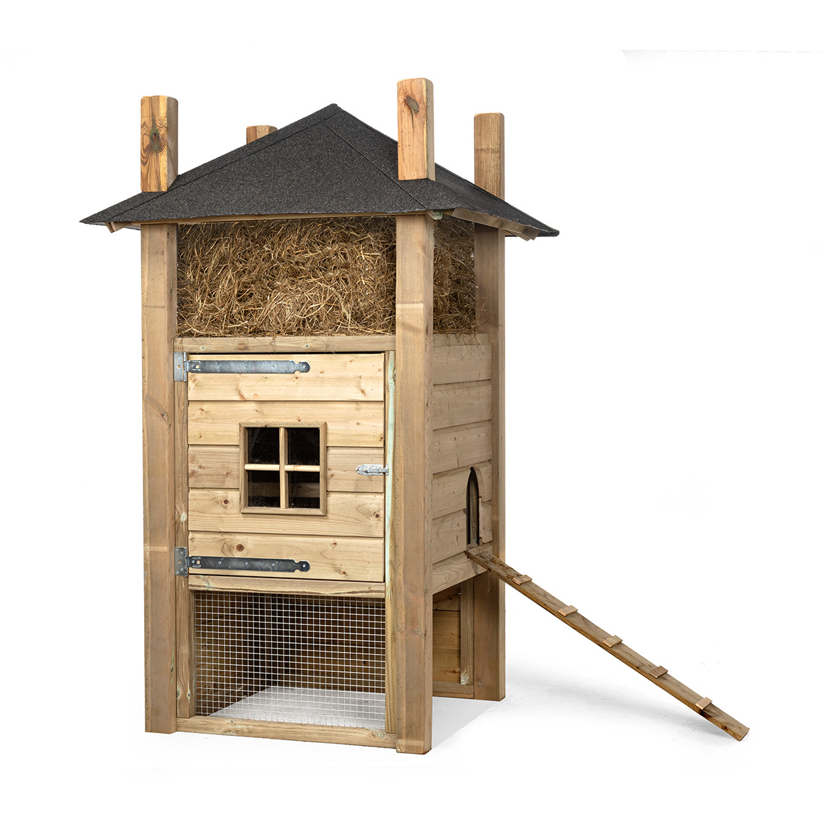 Verhoogd nachthok met een betonplex bodem tegen kou en optrekkend vocht