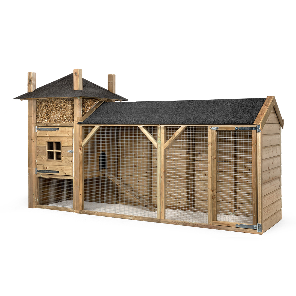 Voorzien van een deur in het nachthok en een deur in de ren