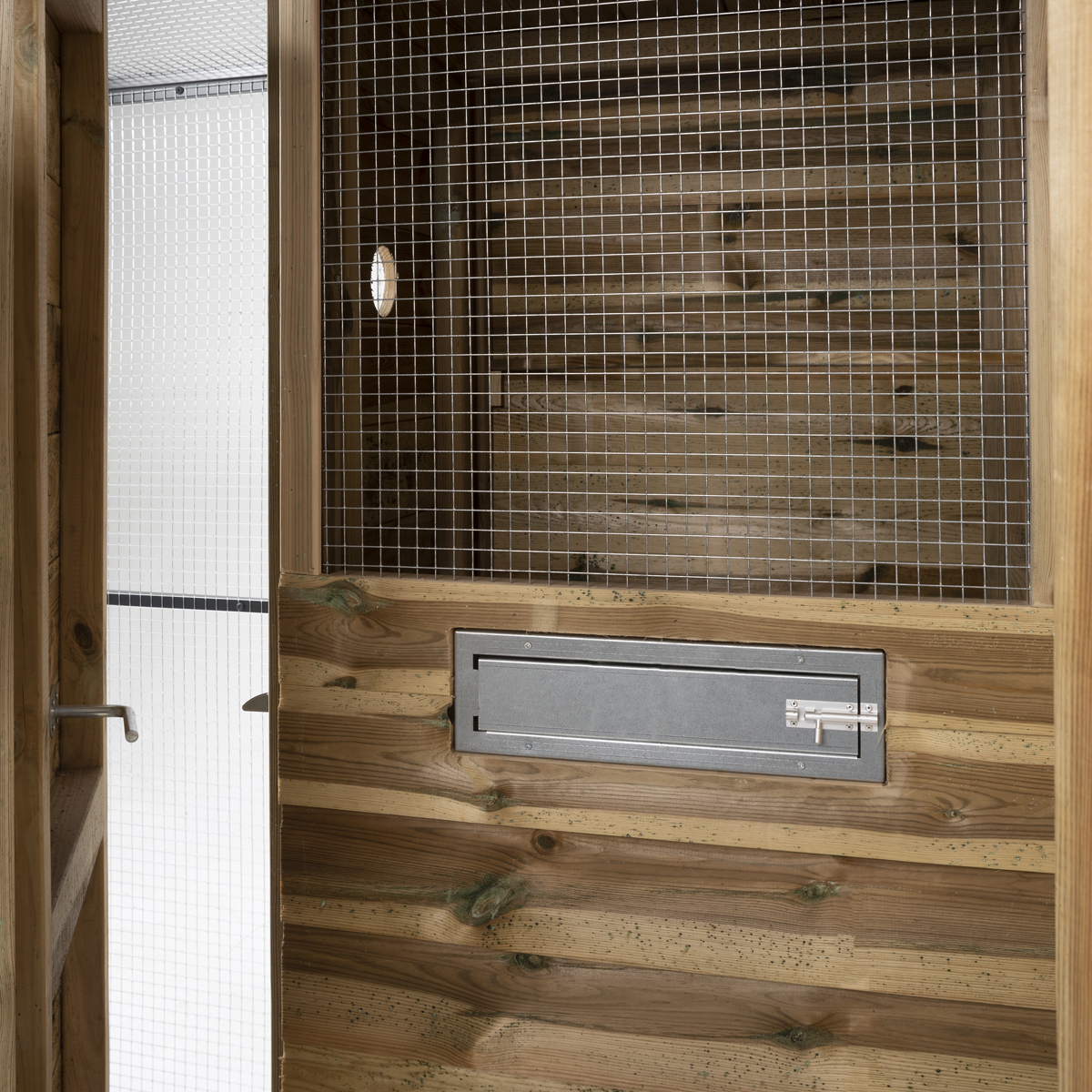 Dit vogelverblijf is voorzien van een praktische sluis mét een handig voersysteem