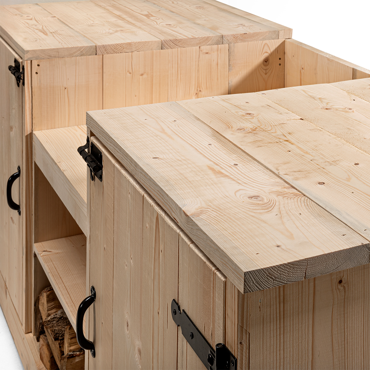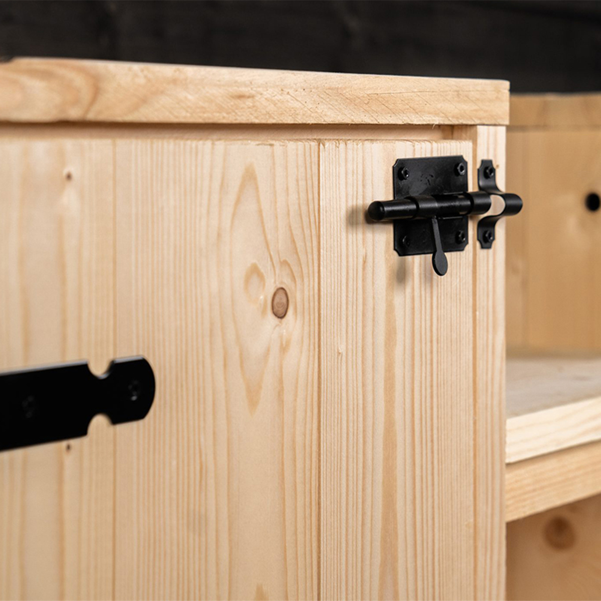 Twee ruime opbergkastjes met zwart hang- en sluitwerk