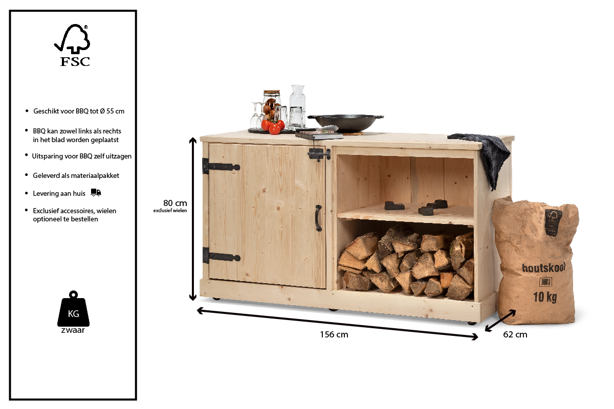 Geschikte keuken voor Kamado of BBQ tot 55 centimeter
