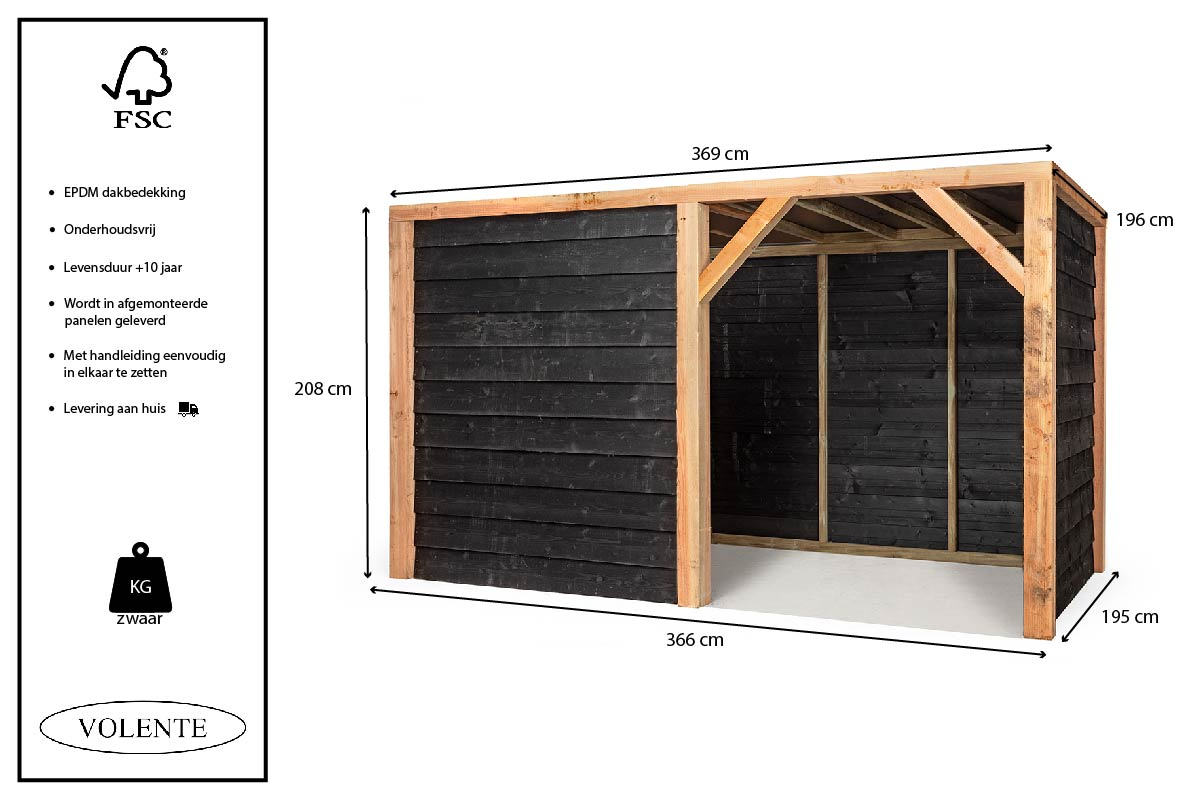 Onderhoudsvrije tuinberging gemaakt van Douglas hout en zwart potdeksel