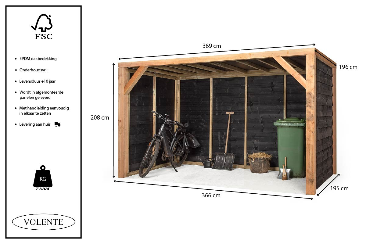 Onderhoudsvrije tuinberging gemaakt van Douglas hout en zwart potdeksel