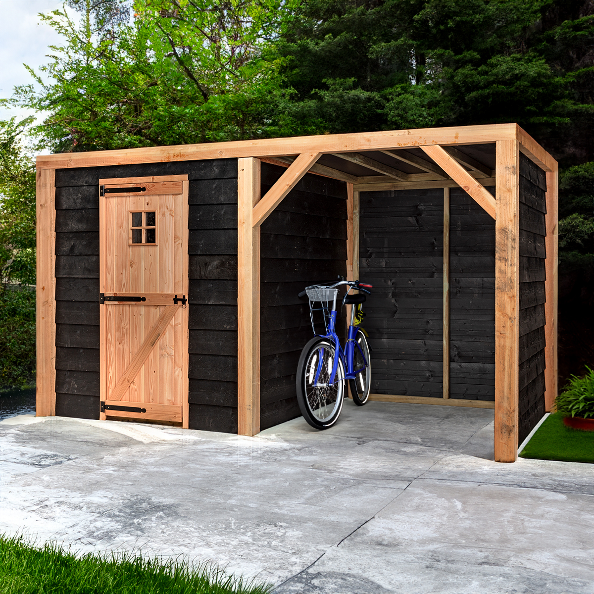 Onderhoudsvrije tuinberging gemaakt van Douglas hout en zwart potdeksel